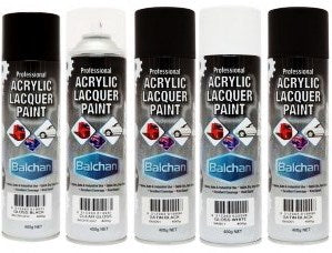 Balchan Acrylic Lacquer Paints is a range of high quality quick drying solvent based acrylic lacquer spray paints used to protect surfaces and cover up scratches, chips and other abrasions. For use in home, workshop, industrial and automotive applications. Well suited to all metal surfaces.