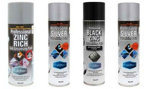 Balchan Zinc Rich Cold Galvanising is a range of professional quality cold galvanising epoxy coatings. The Zinc Rich Cold Gal contains 93% zinc in dry film. This quick drying epoxy coating is highly resistant to salt corrosion, provides maximum protection to ferrous metals and has excellent anti-sag properties. This 400gm aerosol is also available in 500ml, 1 litre and 4 litre brush on form.