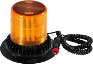 Britax BF600 Series LED Beacons 2500 lumen produced from 10 x 5W Amber LED's. 10-30V multivoltage. 4 flash patterns. Polycarbonate lens, amber or clear. Rated IP67. 3 bolt fixing, magnetic suction with curly cord and plug, or flexipole mount 90° adjustable base.