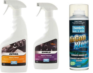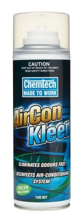 Chemtech AirCon Kleen™ air conditioning cleaner is formulated to deodorise & disinfect the heating, ventilation and air conditioning system and freshen the vehicle’s interior by eliminating bacterial and fungal growth. Suitable for both cars and trucks. Citrus fragrance.