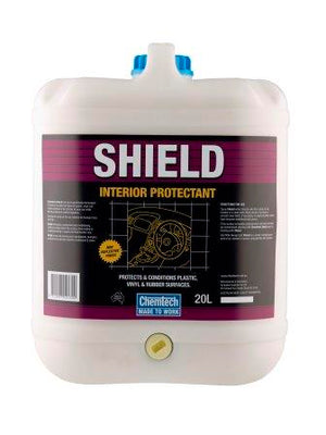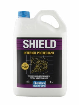 Chemtech Shield is ready-to-use. Formulated to protect all types of plastic, vinyl and rubber surfaces in the car interior. Vanilla fragrance. For use on the car exterior for bumper bars and trim. Non-oily finish.
