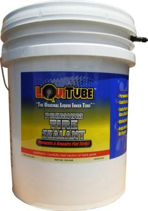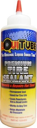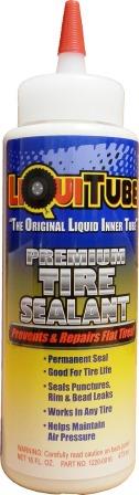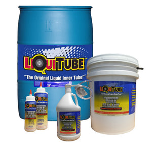 LiquiTube Tyre Sealant Specially formulated premium tyre sealant. Patented formula comprising 23 separate ingredients combined and heat treated resulting in a homogeneous compound which will not separate in either the delivery container or the tyre. Suitable for all air filled tyres (not for use in tyres with liquid ballast or powder ballast.) Seals punctures up to 6mm in standard tyres and up to 20mm in heavy ply tyres. Seals against bead or rim leaks. Installed through the valve stem. Helps maintain tyre pressure, draws heat from tread surface up tyre walls extending tyre life. Water soluble. Suitable for bicycles, wheelchairs, wheelbarrows, trolleys, cars, motorcycles, trailers, 4WD's, vans, utes, ATV's, caravans, ride-on mowers, golf buggies, trucks, tractors, earth-moving and agricultural vehicles (not suitable in tyres with liquid or powder ballast).