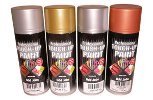 Odd Jobs Professional Touch Up Paint is a range of Australian Made Quick Dry Enamel Spray Paints in 250 gram aerosol. The range comprises 31 colours, 4 metallic and 3 primers. Ideal for use in the workshop, on site or around the house on cupboards, doors, gates, wrought iron, screens, trellises, letterboxes and toys. Suitable for metal, timber and composite surfaces. The use of Odd Jobs Primer and Clear top coat is recommended.