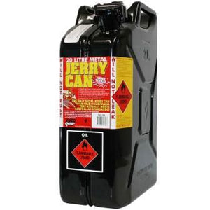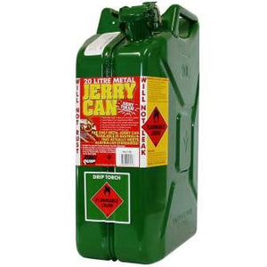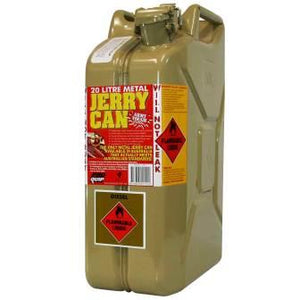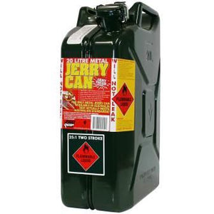 Pro Quip Metal Jerry Cans 20 litre All Pro Quip metal Jerry cans are certified to AS2906:2001, and pass Defence Force testing (BAM). Designed with dual bayonet closure with patented secondary locking pin. Pressure tested to 415kpa. Designed with 12mm square internal breather pipe into ullage to ensure contents pour freely. Meet UN approval and meet TUV Standards.