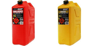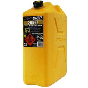 Pro Quip Plastic Fuel Cans 20 litre Certified to AS2906:2001 Australian Made. Military style for easy fit into racking. Integrated top handle. Internally stored pourer. Breather at back ensures contents pour freely. Embossed finish provides slip resistance. Replacement interchangeable parts available in retail packaging.
