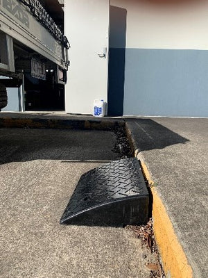 Safety Gear Kerb Ramp Heavy duty moulded rubber with checker-plate pattern. Designed to provide vehicles and trailers easy access over standard height gutters. It is ideal for caravans, boats, trailers, cars and motorcycles. The design incorporates provision for permanent installation, subject to Local Government approval. Rated to 10,000 kgs.