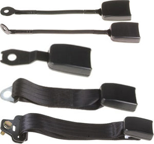Webbing Buckle Adjustable Length Buckle head has a length seat belt webbing looped through its low end and the webbing is then stitched. At the other end the webbing is looped through a steel plate and is then over locked. The webbing length may be adjusted to suit and when the steel plate is anchored to the vehicle the webbing is crimped such that its length is no longer adjustable. Floor mounting. Suits all seat belt positions although usually used in rear seat applications. Available lengths: Adjustable 150mm - 610mm, 150mm - 950mm.