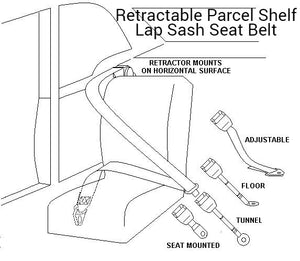 In some vehicles, it is an option to mount the retractor of a seat belt using the rear parcel shelf as the anchoring structure. The belts are a lap sash style of belt (see adjacent diagram) with a few differences to “On Pillar “ or “In Pillar” models.